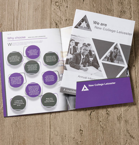 We worked with New College Leicester to create a new logo and suite of printed materials including: Prospectus, Insert booklet, Strategy brochures and stationery.